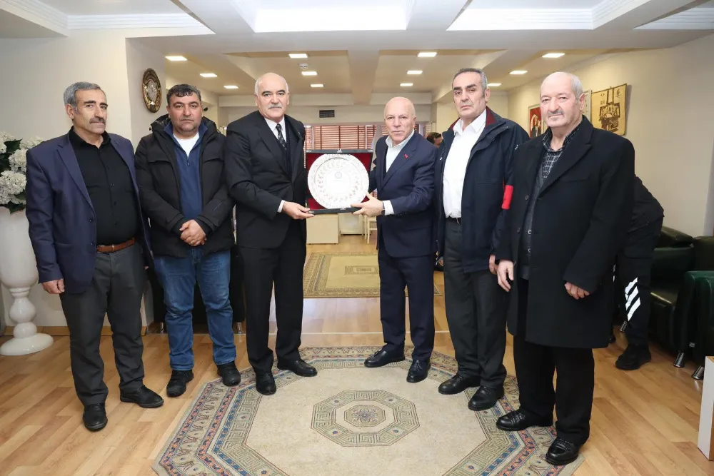 Erzurum Özel Halk Otobüsleri Derneği Başkanı Hamza Özkan ve yönetim kurulu üyeleri, Büyükşehir Belediye Başkanı Mehmet Sekmen’i makamında ziyaret etti.