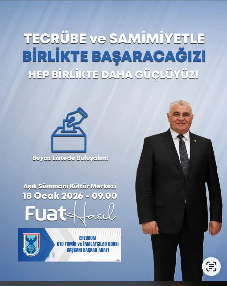 Erzurum Oto Tamir ve İmalatçılar Odası Başkanı Fuat Haşıl, 18 Ocak 2026 Pazar günü gerçekleştirilecek genel kurul öncesinde üyelere çağrıda bulundu.
