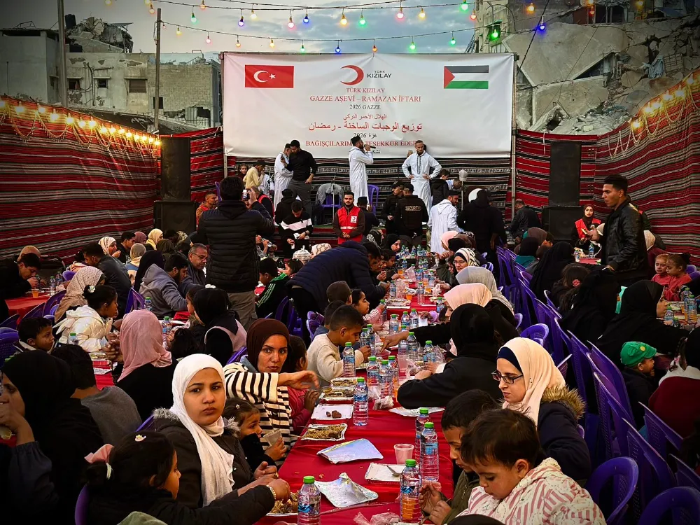 Türk Kızılay, Ramazan’ın ilk gününde Gazze’de yerinden edilen Filistinliler için sokak iftarı düzenledi; aşevi kapasitesini 60 bin kişiye çıkarırken, 21’inci İyilik Gemisi’ni Mersin Limanı’ndan bölgeye uğurladı. Ramazan ayının ilk gününde Türk Kızılay, Gazze’de yerinden edilen Filistinliler için iftar programı düzenledi. Gazze kentinin orta kesimindeki Yermuk bölgesinde kurulan sokak iftarında yüzlerce aile aynı sofrada bir araya geldi. Zorlu koşullar altında yaşam mücadelesi veren sivillere sıcak yemek ikram edilerek Ramazan’ın dayanışma ruhu paylaşıldı.