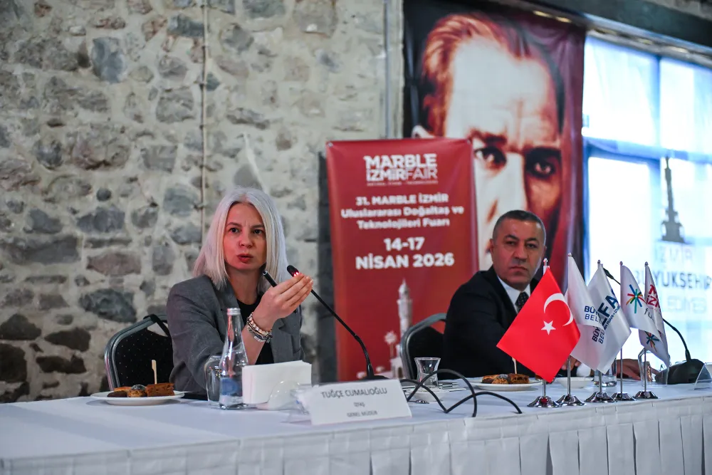 14 – 17 Nisan 2026 tarihleri arasında düzenlenecek 31. Marble İzmir Fuarı’nın Danışma Kurulu Toplantısı, İZFAŞ Genel Müdürü Tuğçe Cumalıoğlu ev sahipliğinde, Ege Maden İhracatçıları Birliği Yönetim Kurulu Başkanı İbrahim Alimoğlu, TÜMMER Yönetim Kurulu Başkanı Hanifi Şimşek, oda ve birlik başkanları ile yöneticileri ve sektör temsilcilerinin katılımıyla Tarihi Havagazı Fabrikası'nda düzenlendi. Hazırlık süreci, teşvikler ve sektörün beklentilerinin ele alındığı toplantıda konuşan İZFAŞ Genel Müdürü Tuğçe Cumalıoğlu, Marble İzmir’in 31 yıldır doğal taş sektörüne sağladığı katkıların yanı sıra İzmir’in ekonomik hareketliliği, ticaret hacmi ve uluslararası görünürlüğü açısından da önemli bir rol üstlendiğini ifade etti. Fuarın, üretimden ihracata uzanan geniş bir yapıyı bir araya getirdiğini vurgulayan Cumalıoğlu, Marble İzmir’in sektörün gelişimine katkı sunan, kentin marka değerini güçlendiren ve 100’ü aşkın ülkeden katılımcı ve ziyaretçisi ile uluslararası iş birliklerine zemin hazırlayan önemli bir buluşma noktası olduğunu belirtti.