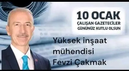 Yüksek İnşaat Mühendisi Fevzi Çakmak’tan 10 Ocak Gazeteciler Günü Mesajı Yüksek İnşaat Mühendisi Fevzi Çakmak, 10 Ocak Çalışan Gazeteciler Günü dolayısıyla bir kutlama mesajı yayımladı.